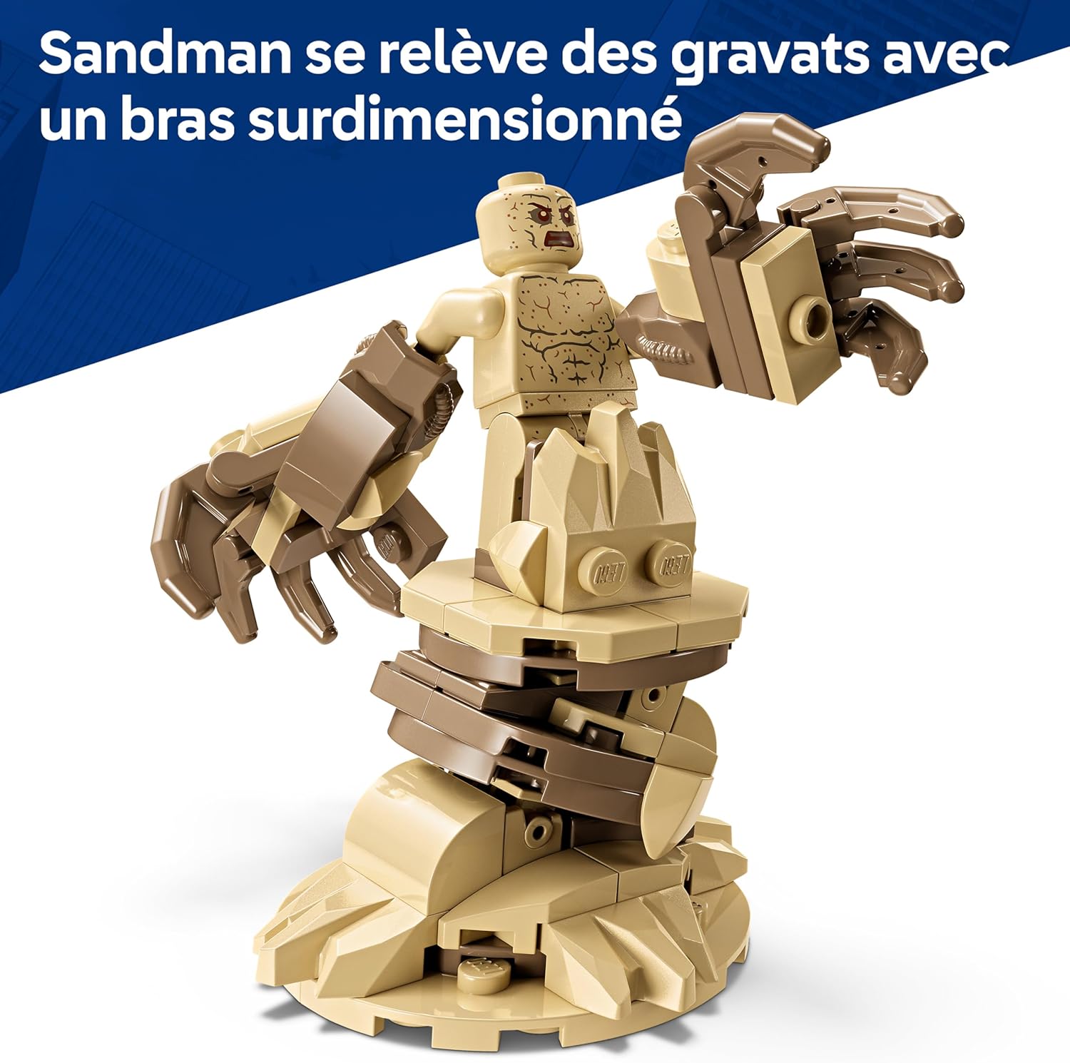 3 MINIFIGURINES LEGO ǀ MARVEL – Ce jouet LEGO inclut 3 minifigurines qui s’affrontent sur un chantier de construction : Spider-Man, Venom doté de tentacules et Sandman avec un support en briques