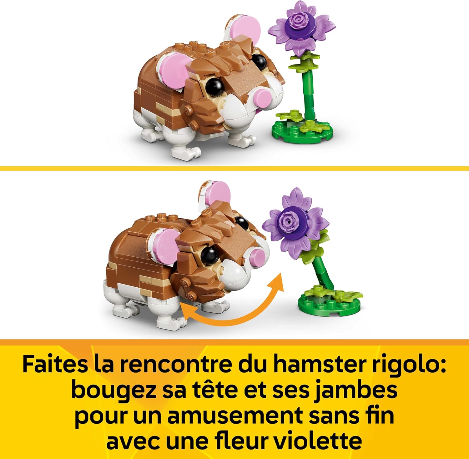KIT DE CONSTRUCTION 3-EN-1 AVEC ANIMAUX À ASSEMBLER – Le set L’adorable hamster et la fleur LEGO Creator 3-en-1 permet aux enfants dès 7 ans de reconstruire 3 jouets avec les mêmes briques