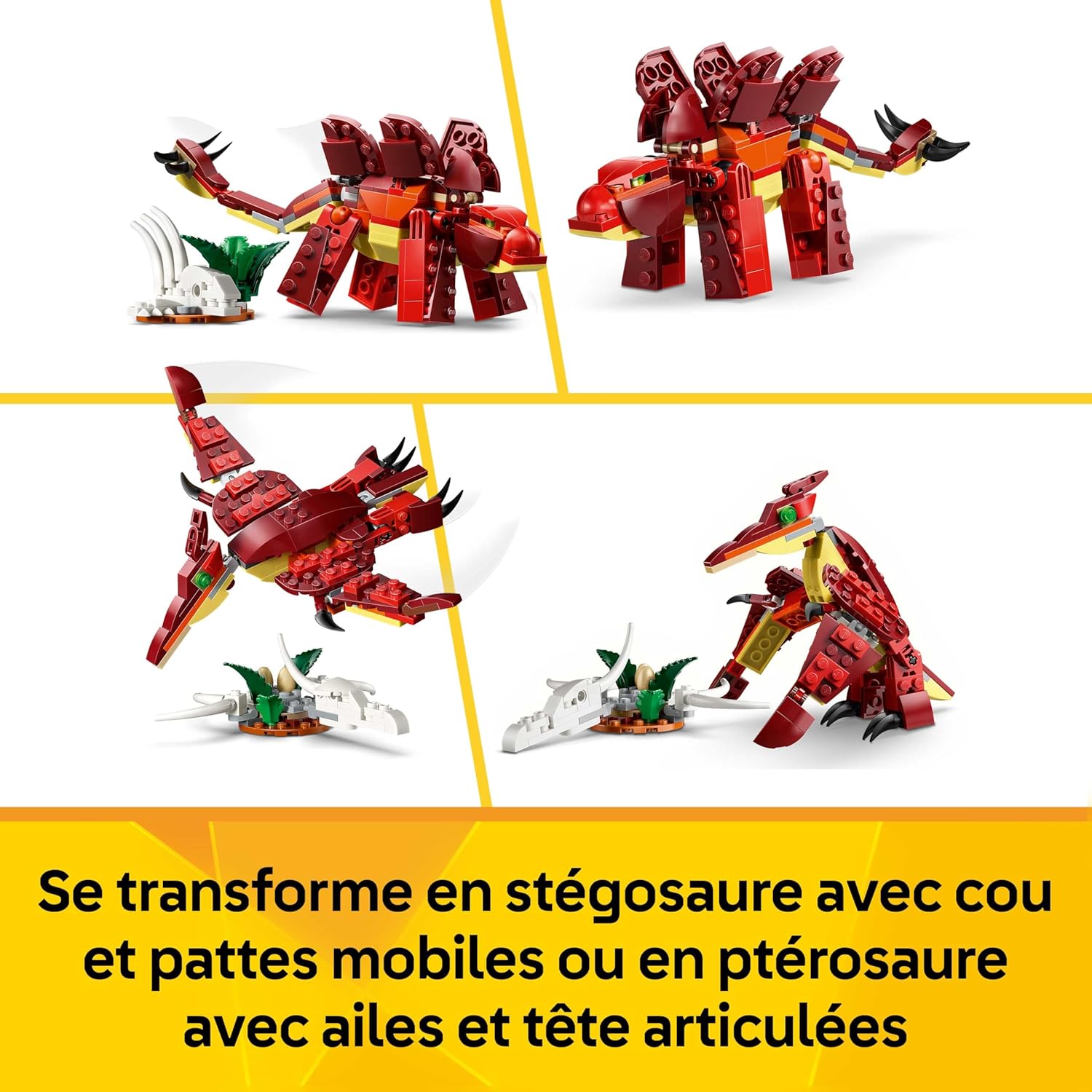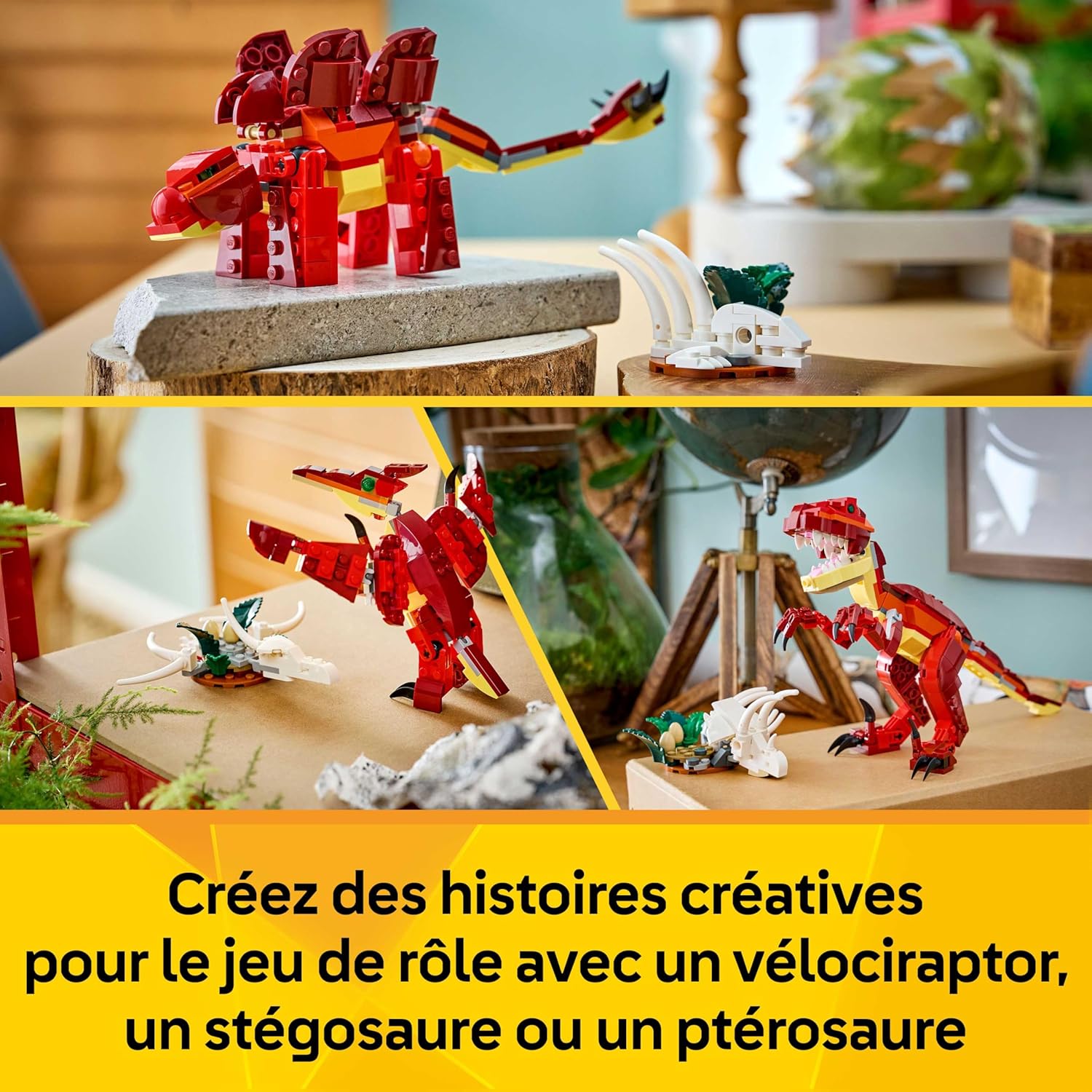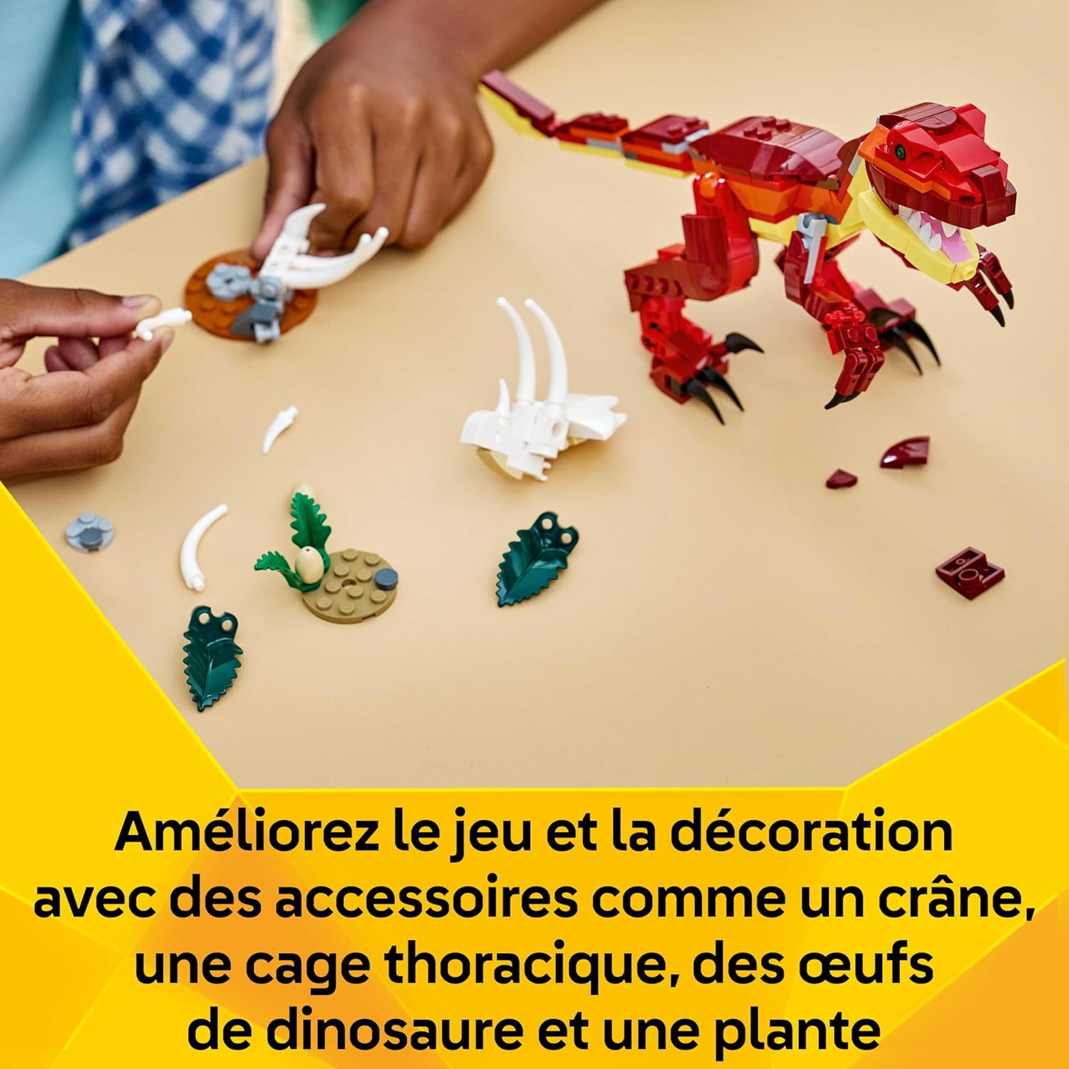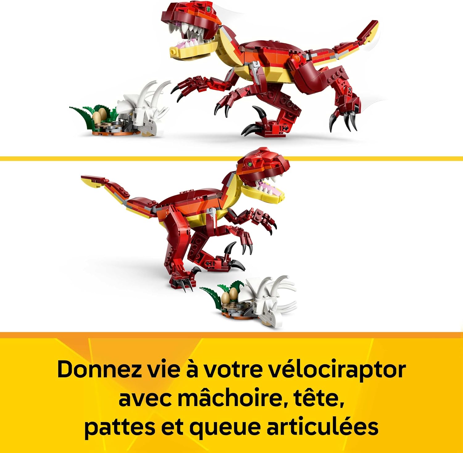 JOUET DINOSAURE 3-EN-1 – Le dinosaure féroce LEGO Creator éveille la créativité des garçons et des filles dès 8 ans qui peuvent construire 3 maquettes de dinosaures en utilisant les mêmes briques