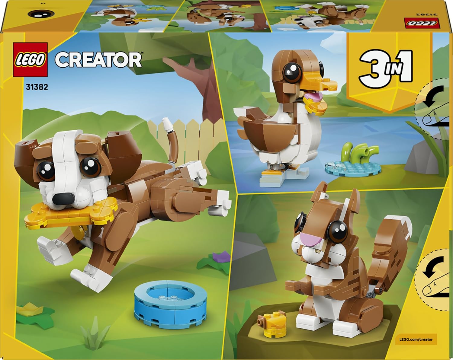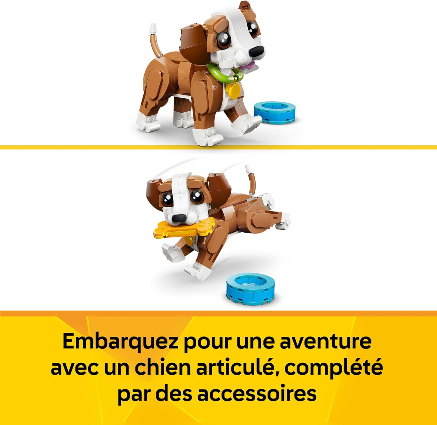 JOUET CHIEN 3-EN-1 POUR FILLE OU GARÇON DÈS 8 ANS – Le set de construction Les adorables animaux : le chiot joueur LEGO Creator 3-en-1 invite les enfants à créer et transformer 3 animaux avec les mêmes briques LEGO