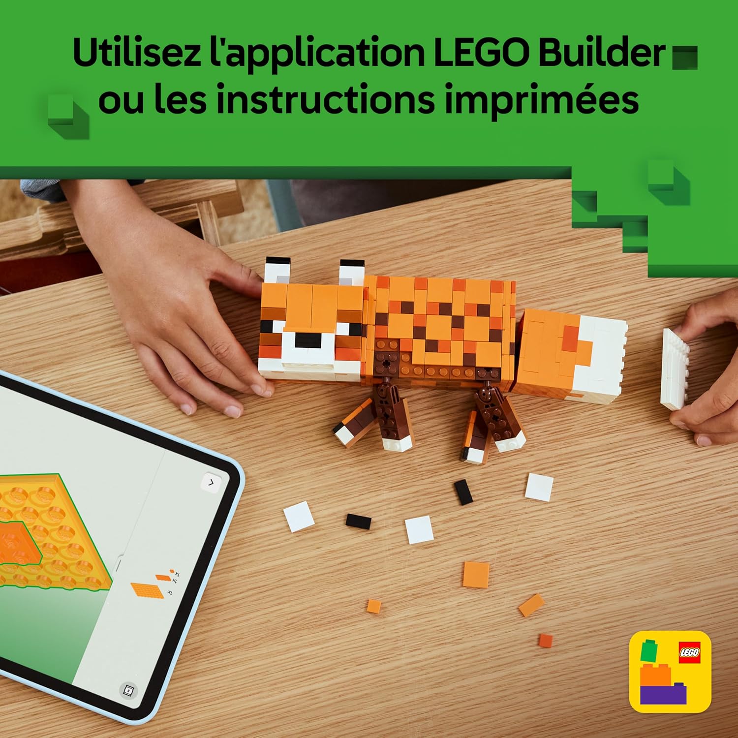 FIGURINE D’ANIMAL ARTICULÉE – Ce jeu de construction LEGO Minecraft reconstitue le personnage classique du jeu vidéo avec des pattes ajustables, une tête et une queue mobiles pour placer le renard dans différentes postures